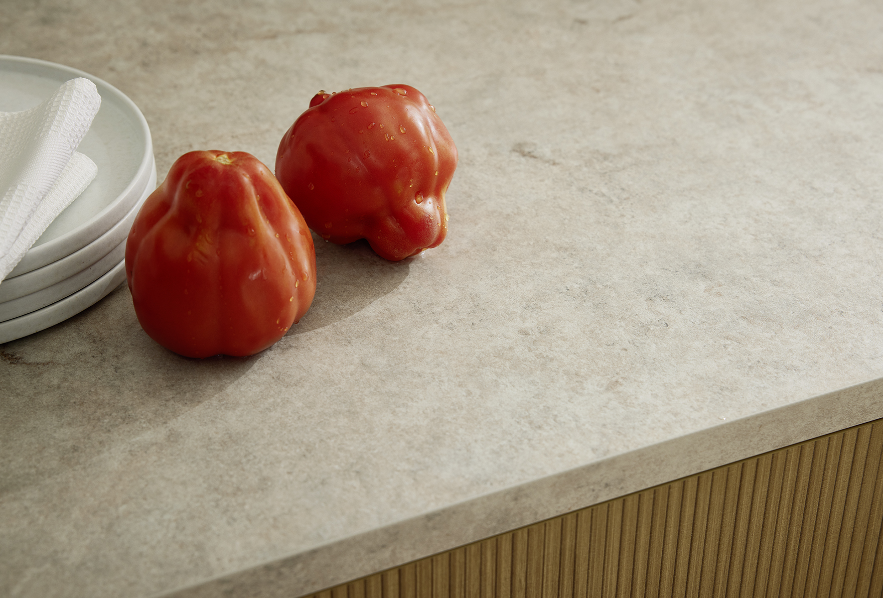Les façades sans poignées de l’Artline offrent une apparence minimaliste, tandis que le décor Stripe Wood Crema ajoute une touche chaleureuse avec son veinage bois subtil. Cette combinaison crée une atmosphère accueillante et contemporaine dans votre cuisine.
